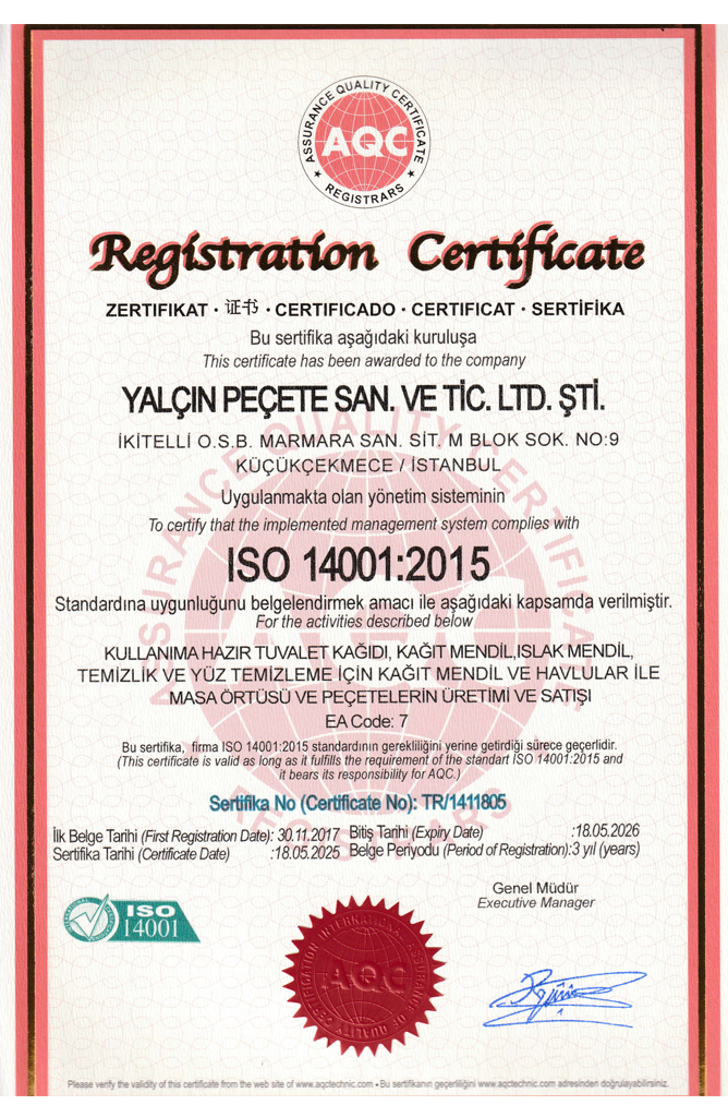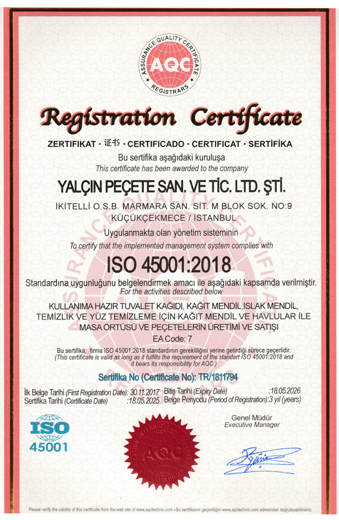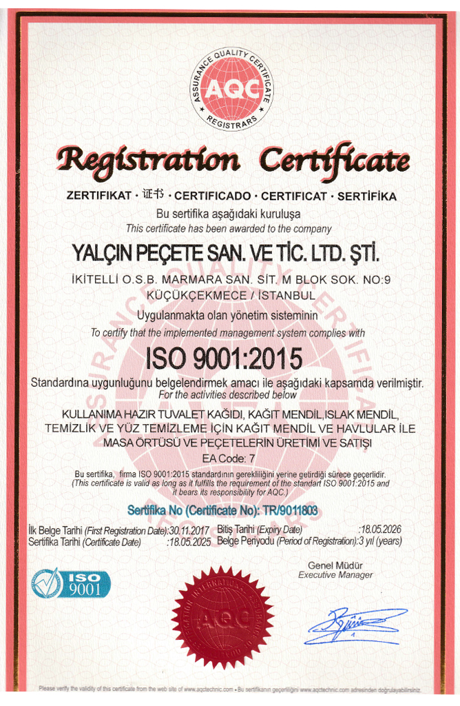 Firmamız faaliyet gösterdiği peçete ve tek kullanımlık ıslak mendil sektöründe tanınan ve saygı duyulan bir firma olarak, kazandığı saygınlığı uzun yıllar boyunca sürdürmeye devam edecektir.