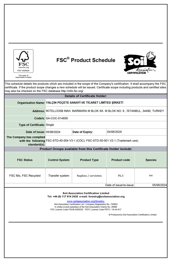1985 yılında İstanbul Beyoğlu’nda Güven Peçete adıyla kurulan Yalçın Peçete, 1993 senesinde şimdiki adını alarak o günden bugüne hızlı ve dinamik çalışma prensibiyle, kendini geliştirerek sektöründe seçkin ve öncü kuruluşlardan biri haline geldi.